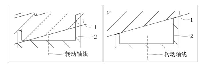 In der ursprünglichen Zeichnung der Anmeldung (siehe ursprüngliche Zeichnung unten) ragt das obere Ende vom Teil 2 in das Innere vom Teil 1 ein, was zu einer gegenseitigen Behinderung von den beiden Teilen führt. Dies steht im Widerspruch zum Wortlaut der Beschreibung, die besagt, dass „die dem Teil 2 zugewandte Seite (Unterseite) des Teils 1 an der Schräge (Oberseite) des Teils 2 anliegt“.