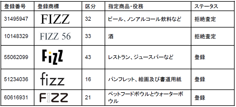 もちろん、すべてのオノマトペが商標登録できるわけではない。同一のオノマトペであっても、指定商品・役務の区分の違いによって登録結果に大きな違いが生じることがある。「FiZZ」を例にすると、当該オノマトペは炭酸飲料や発泡酒の中で泡が発生したり破裂したりする音を表すときに使われる。それが第32類(ビール飲料)と第33類(酒)を指定商品として登録出願した場合、商品の機能的特徴を直接説明しているとして、識別力欠如と認定され、拒絶査定されてしまった。しかし、第16類(事務用品)、第21類(調理用具)、第43類(飲食サービス)などのその他の区分においては、「FiZZ」は指定商品・役務と直接的な説明関係を有しないため、最終的に登録が許可された。